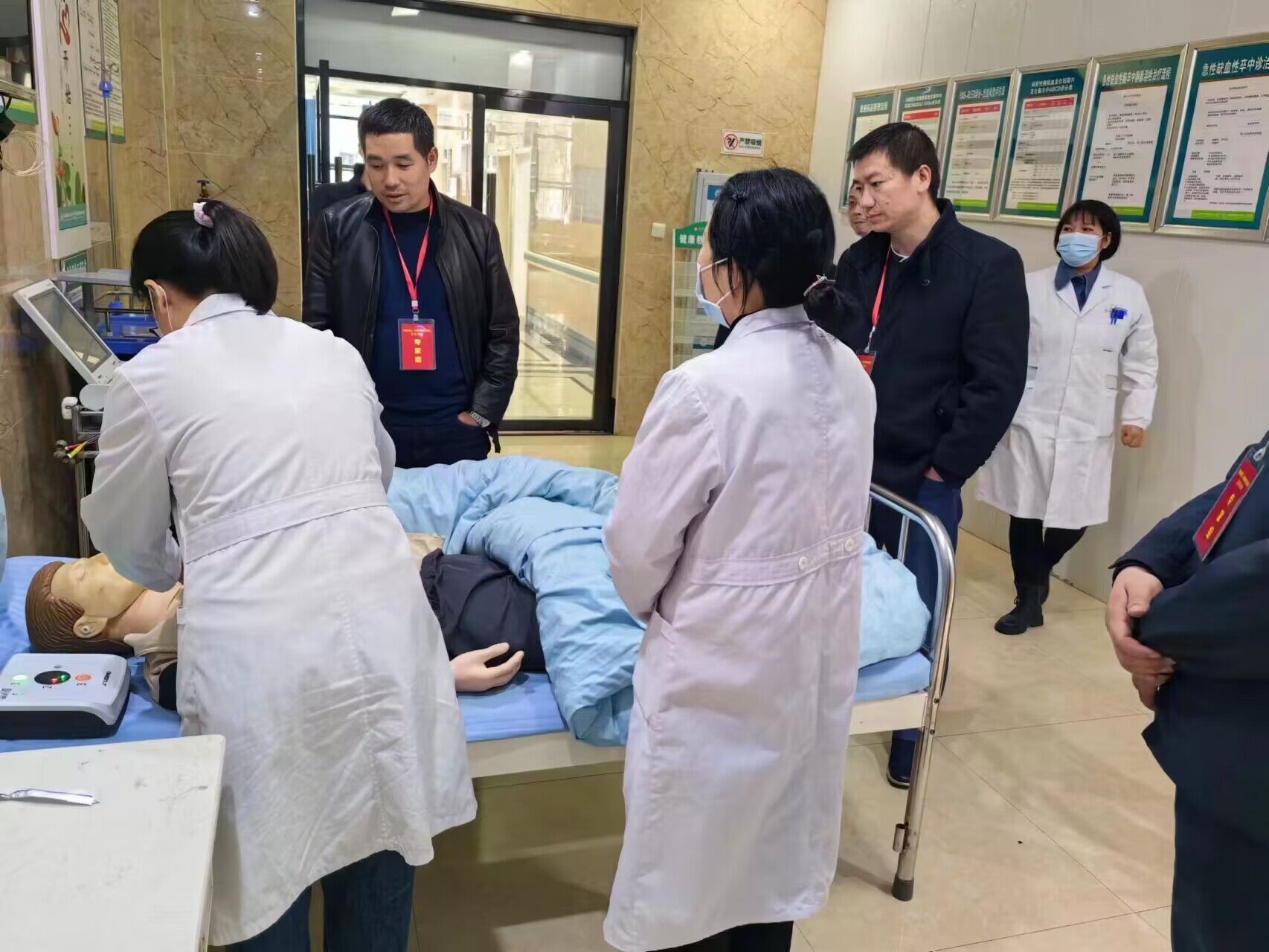 随后,专家组深入急诊室、心律失常门诊、心律失常病区等重点区域进行现场查看和提问。对门急诊救治流程、药品配备、处置流程、随访管理、危急重症救治等方面进行了详细的现场核查,同时现场考核医务人员对急性心律失常患者的急救处理以及除颤仪现场操作。