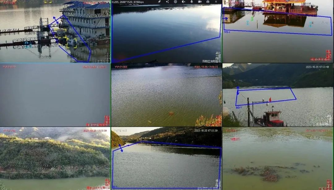 十堰市郧阳区检察院通过接入府检联动信息平台的高清视频监控探头观察汉江流域实时情况。