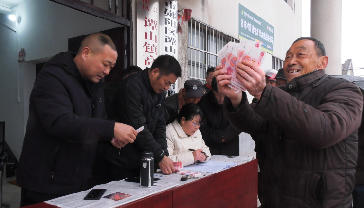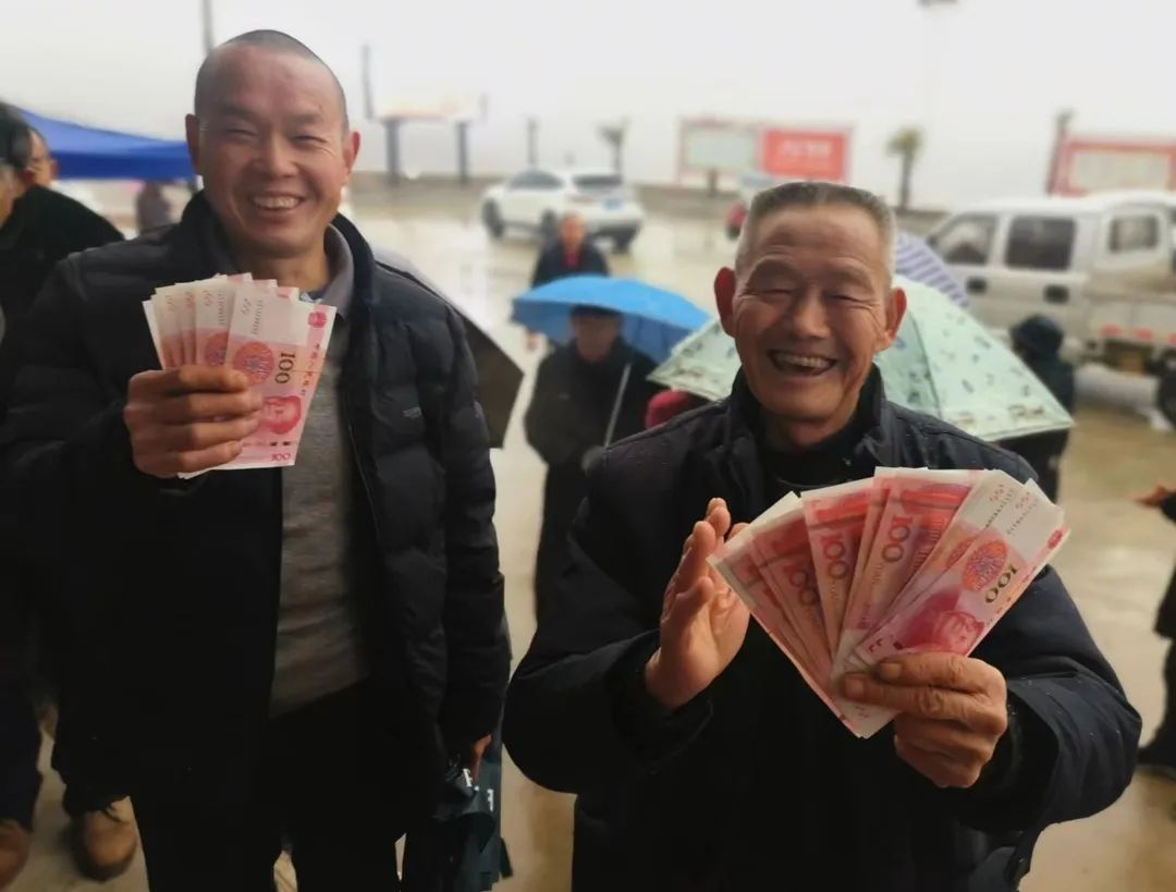 刚领到钱的高儒贵笑呵呵地说:“我这是第6次领钱,往年都是500块,章老四(章玉华)说今年是龙年,发600块,真要谢谢玉华。”