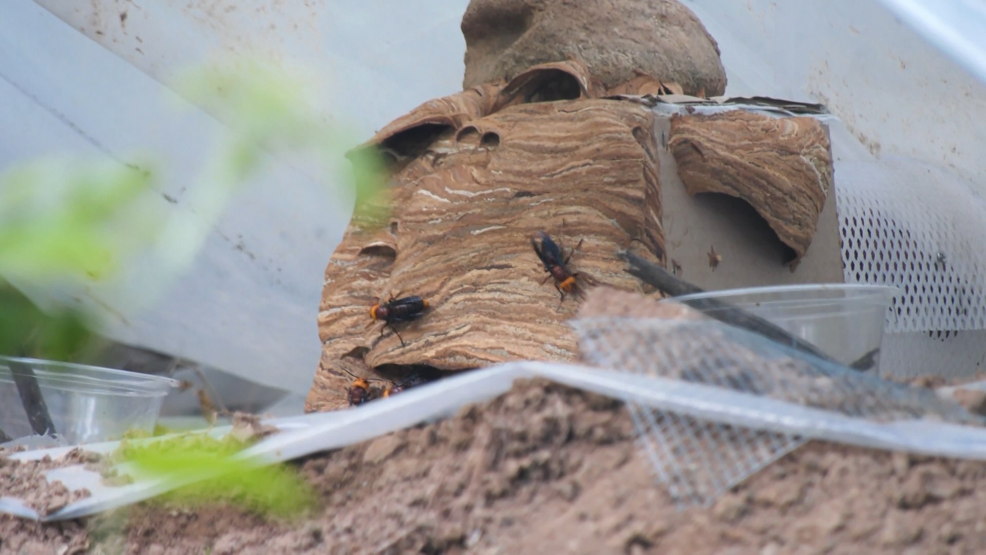 日前,在源生肽(湖北)生物科技有限公司的养殖基地,记者看到,茂密的树林下,一个不足8平方米的塑料棚架内,8个蜂窝高高隆起,勤劳的职蜂正来回穿梭。源生肽(湖北)生物科技有限公司总经理田辉明介绍,野外放养基地根据适宜的温度和湿度,模仿胡蜂自然生长环境。