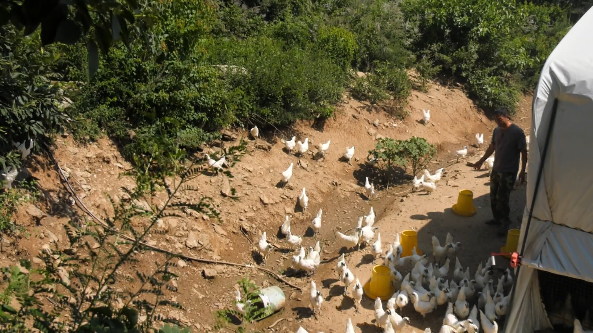 在白桑关镇庄房村,村民张建林养白羽乌鸡已有多年,近两年,他将自家养殖的一万余只白羽乌鸡赶进了大山里,林下养殖不仅减少了他的投入,也提高了白羽乌鸡品质。张建林告诉记者,如果按照规模化、标准化的养殖,设备和粪污处理系统需要投入500万元左右,而选择林下生态养殖,则能显著降低成本。