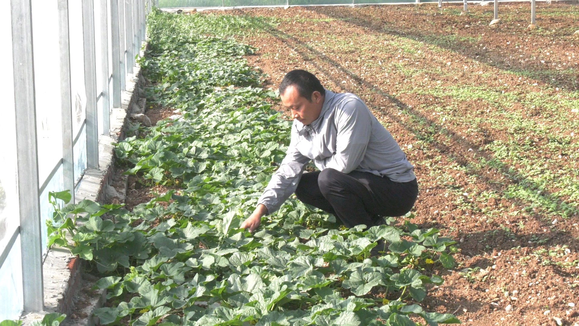 8月21日,在安阳镇居峪村西瓜种植基地,习玉林正在检查大棚内抚育的秧苗生长情况。