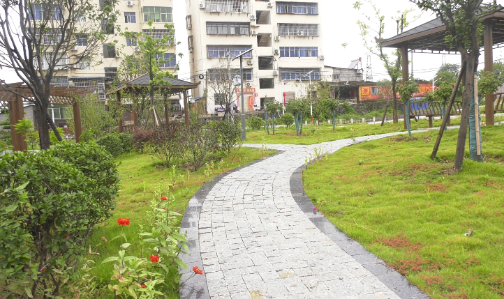 随后,郧阳区筹集项目资金200余万元,在该处建设了广场、游园、停车场,布局了凉亭、廊架、牌楼、路灯等设施,并按照绿树常青、四季有花的要求,栽植了紫薇、桂花、紫藤等景观树和各类花卉,绿地覆盖率达到了总面积60%以上,有效改善了周边居民的生活环境,也成了过往市民的打卡点。