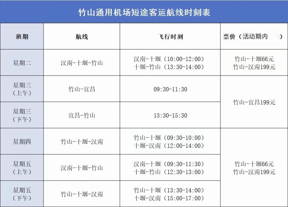 ✈周三上午从竹山飞往宜昌,下午从宜昌返回竹山;