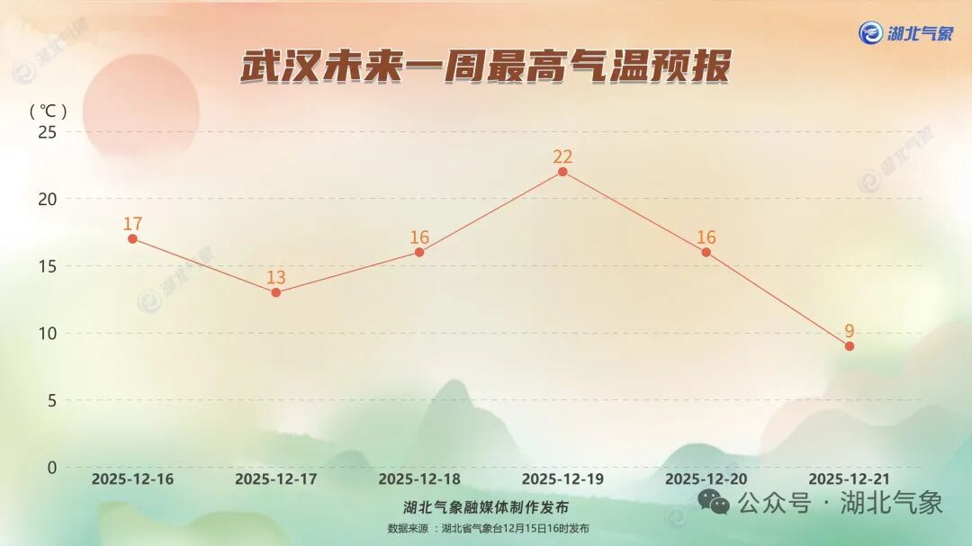 12月16日08时-17日08时,全省多云间晴天。最高气温17~22℃,最低气温北部0~3℃、南部3~7℃,偏北风2到3级,晚上转偏北风3级、阵风4到6级。
