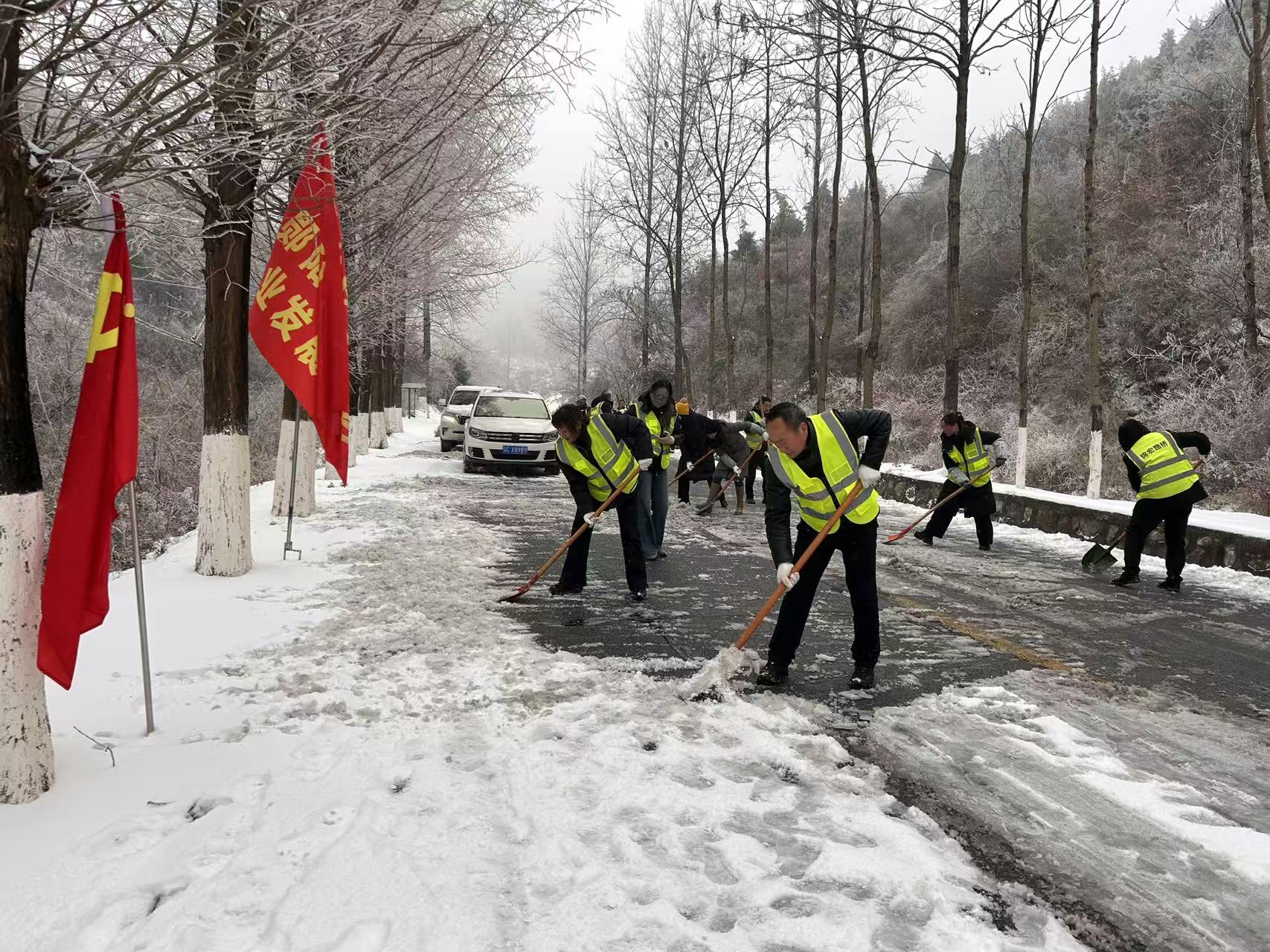 受低温雨雪冰冻天气影响,郧阳区S230葫芦包崖段路面结冰,交通临时管制。郧阳区公路事业发展中心第一时间启动应急预案,组织人力物力迅速开展除冰保畅应急抢险工作。