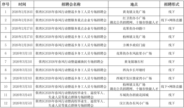 活动主题:张湾区2026年春风行动暨返乡务工人员现场招聘会