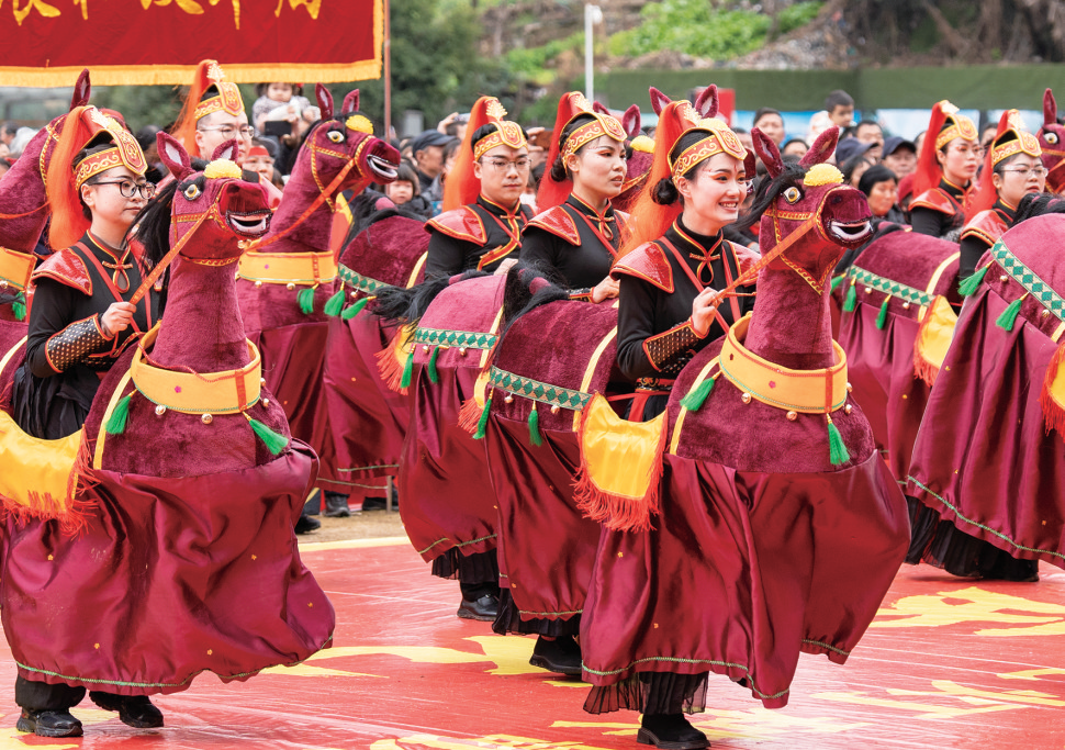 演员们身骑“骏马”,展示万马奔腾的奋进之势。