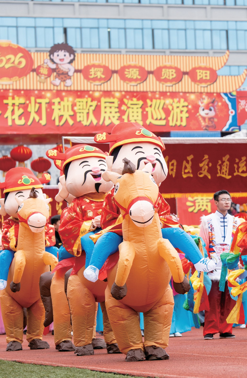 3月2日下午,郧阳区体育场内人头攒动、欢声如潮。伴随着铿锵有力的锣鼓声,“跃马先行区·同心谱新篇”2026年郧阳区元宵节民俗花灯秧歌展演巡游活动拉开帷幕。32支展演队伍踏歌而来,千盏花灯流光溢彩,数万市民欢聚一堂,在非遗民俗与时代新风的交融中,共赴一场闹元宵的文化盛宴,共绘一幅滨江绿色发展先行区的奋进图景。