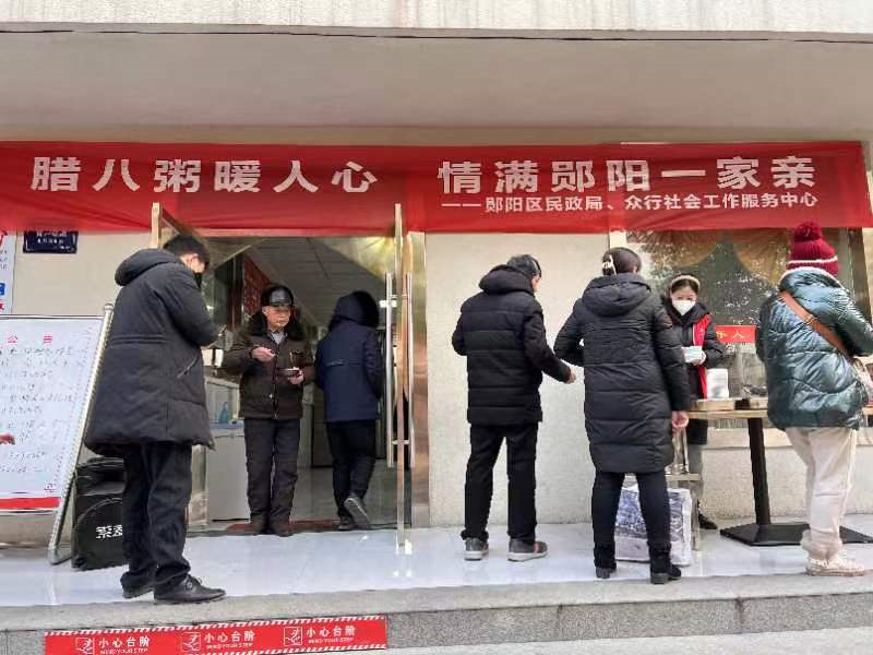 12月30日早上7点至9点半,郧阳区民政局、众行社会工作服务中心组织开展“浓情腊八粥 温暖送祝福”腊八节志愿服务活动。