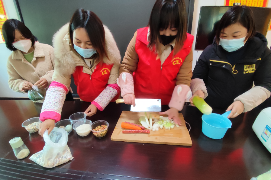 12月30日清晨,城关镇武阳岭社区、体育场新时代文明实践站志愿者早早来到社区,将提前洗净泡发一夜的红枣、花生、莲子、小米、黑米、糯米等多种食材全部下锅,为社区居民熬上一锅香浓的腊八粥。