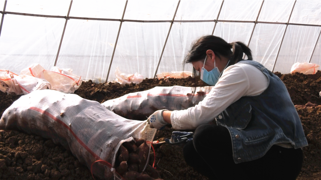 白龙庙村村民周长英告诉记者,她是红薯育苗基地附近的村民,在基地上班,能照顾到老人和孩子,工作一天一百多,非常的方便。