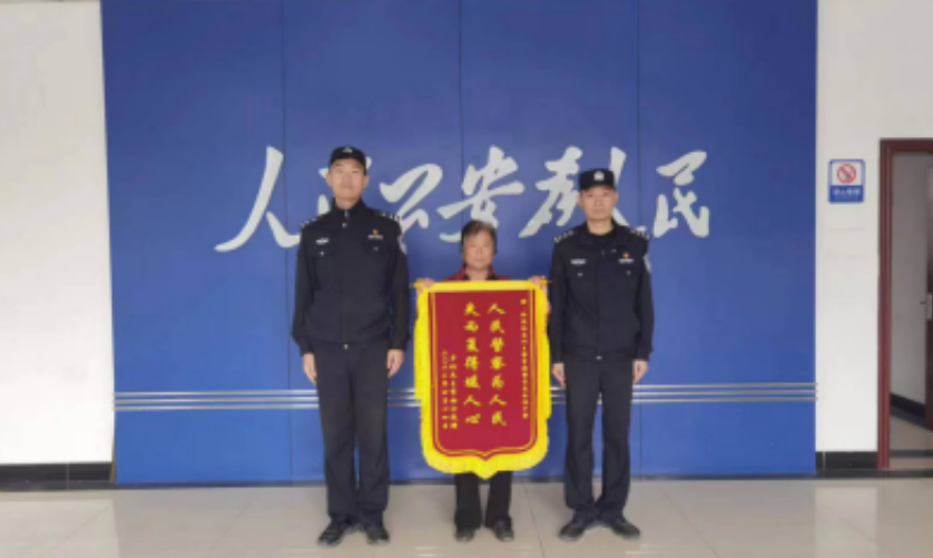 近日,当事群众李大妈为办案民警送来锦旗表达感谢。