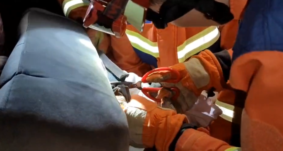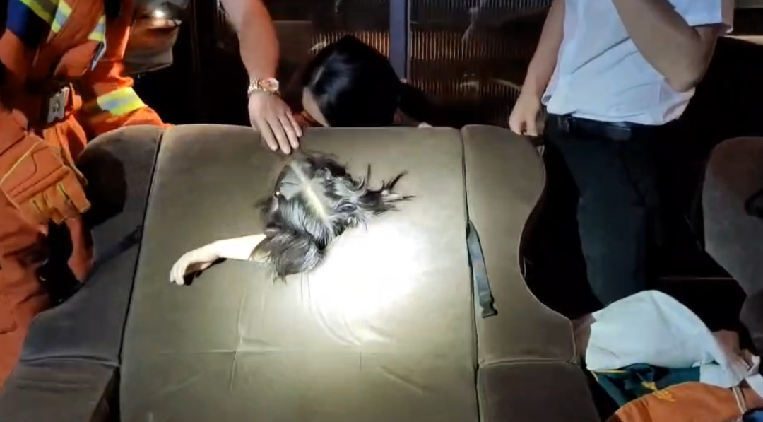 经过勘察现场,消防救援人员当即用剪刀把按摩床表皮剪开,并在安抚被困小女孩的同时用毛巾包裹其身体,防止二次伤害。
