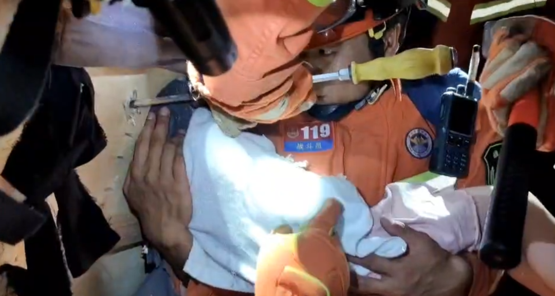 经过近十分钟的紧张营救后,“小神兽”被成功安全救出,消防救援人员现场初步检查被困小女孩无大碍后,交由其妈妈看护。