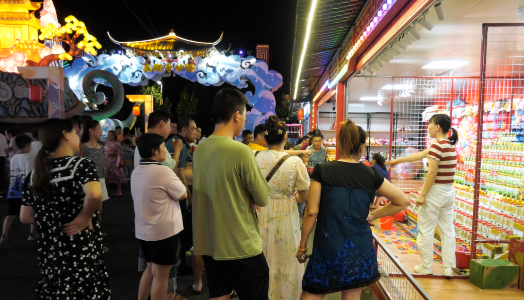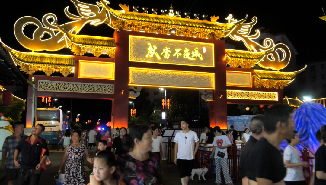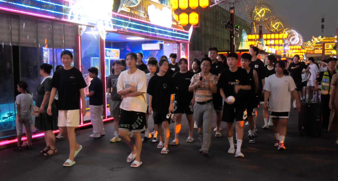 8月18日晚,参加2023年全国(U19)青年篮球联赛女子组决赛的辽宁队和上海队球员,在比赛间隙来到郧阳沉浸式夜游文旅项目武当不夜城。