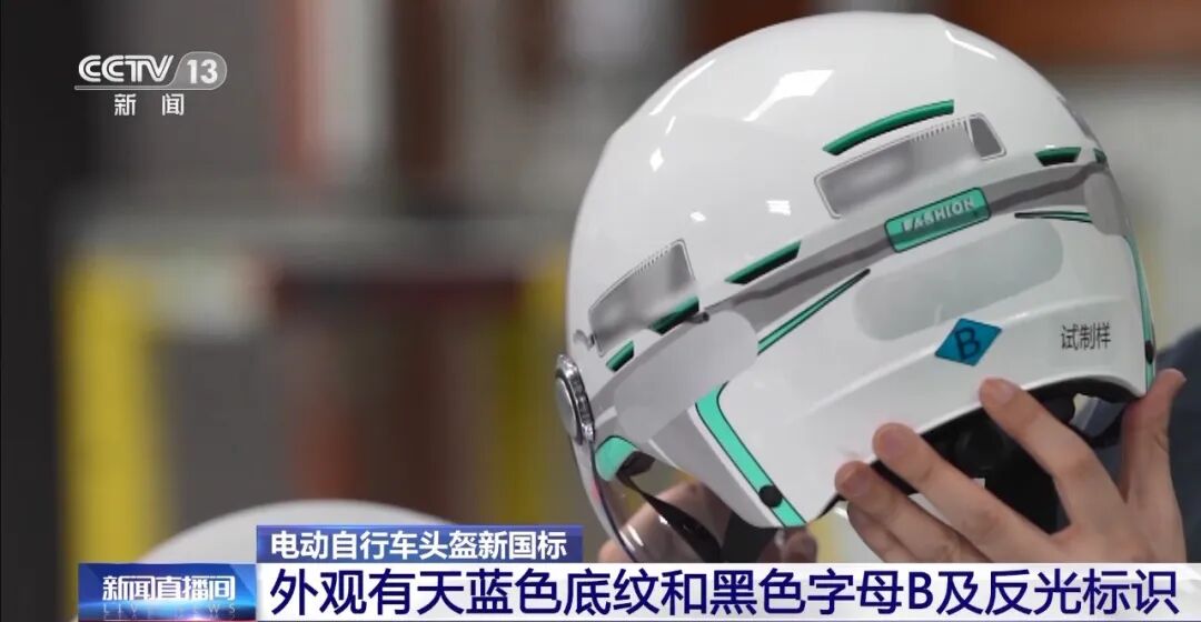自今年7月1日起,新版《摩托车、电动自行车乘员头盔》强制性国家标准正式实施。新国标对电动自行车头盔的外形和内在性能都提出了具体要求。外观有天蓝色底纹和黑色字母 B 及反光标识新国标将头盔按照摩托车、电动自行车两种不同的适用对象,分为 A 类和 B 类。A 类为摩托车乘员头盔, B 类为电动自行车乘员头盔。