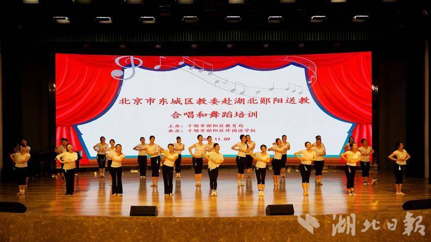 当天,北京市东城区崇文少年宫舞蹈教师孙嘉慧在十堰市外国语学校作了《新时代校外舞蹈编创发展趋势》专题讲座。孙嘉慧从近十年校外舞蹈编创发展特点出发,通过理论讲解、作品解析等方式,对校外舞蹈编创进行了深入浅出的讲解,并从不同方面进行扩展和延伸,使大家对舞蹈编创有了更深层的认知。北京市东城区少年宫教师、东城区骨干教师、东城区校外声乐教研组组长郭璐璐作了《童声合唱团训练与指挥》专题讲座。郭璐璐从合唱基本要素、指挥方法、训练方式等方面给老师们做了讲解,并且用实例带领各位老师进行了指挥实操训练,开拓了老师们合唱指挥教学视野,树立了合唱指挥教学的新理念。北京市第五十五中学高级教师、教育主任、国家一级运动员高佳,走进郧阳区实验小学为该区体育教师送来足球示范课。高佳带领老师们进行了运球、传球、射门的基本常规训练及讲解。高佳还以如何在校园足球中践行立德树人做专题讲座。他激励每一位校园足球教师要以育人为根本,做足球人才培养的启发者、领路人。实验小学教师肖国忠说:“足球是实验小学的招牌之一,我们要利用好每次学习交流的机会,让专业教师形成合力,开创郧阳区校园足球新篇章。”