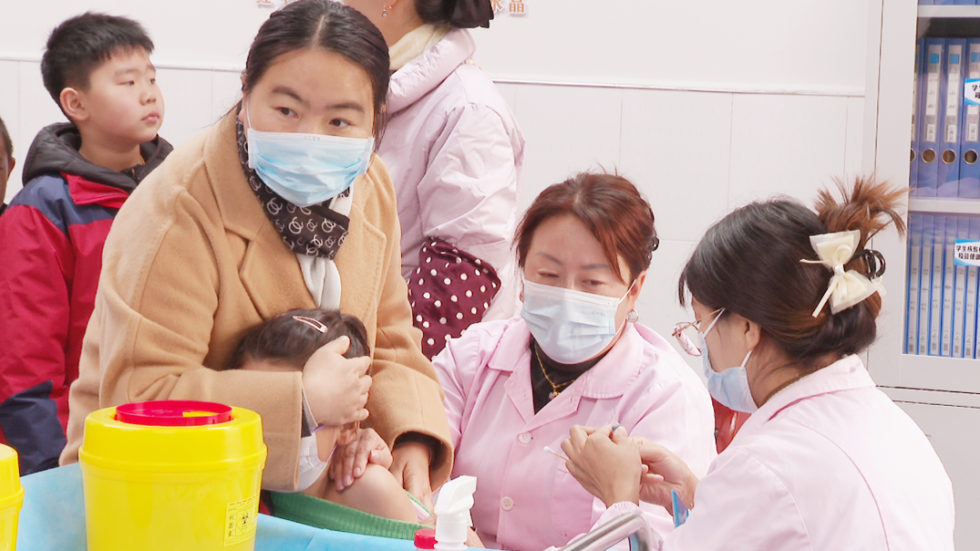 在郧阳区实验小学,学校正在组织学生进行流感疫苗接种。