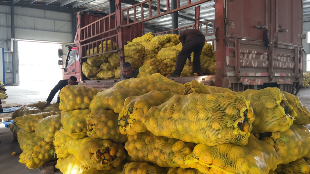 12月5日,记者走进十堰高新区耀荣木瓜生物科技发展有限公司,看到大量的新鲜木瓜被运往木瓜加工中心,工人们正忙碌地将装满木瓜的袋子进行整理,为后续的加工做准备。