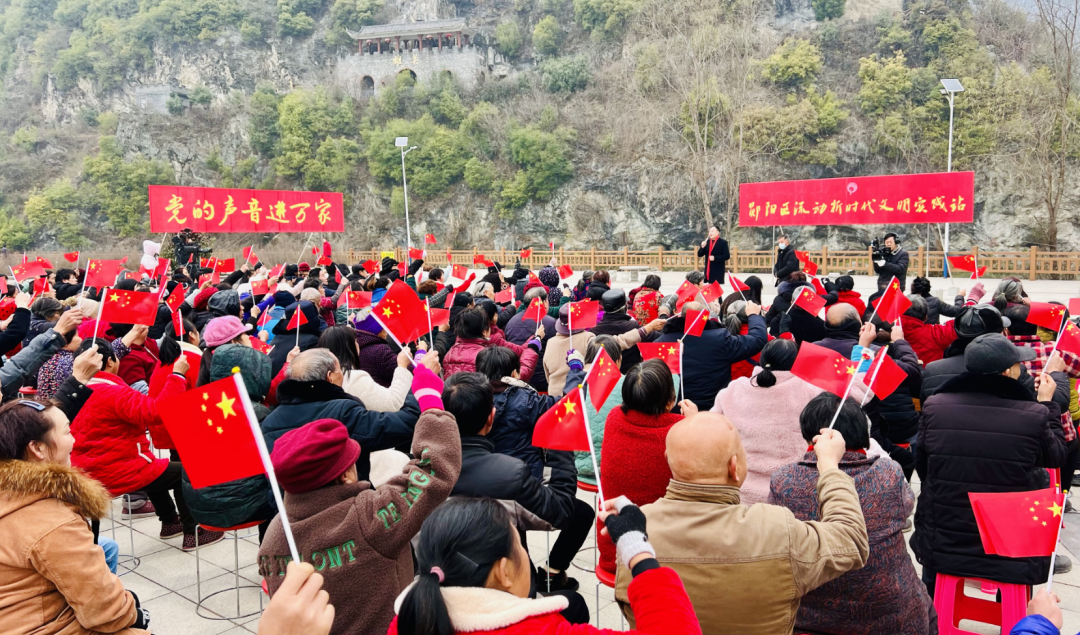 群众在哪里,文明实践就延伸到哪里。12月20日下午,郧阳区第14场“流动新时代文明实践站”活动走进鲍峡镇。省委宣传部文明创建二处处长杨序元、市委宣传部副部长张春斌、区委常委、宣传部部长李海伦参加活动。