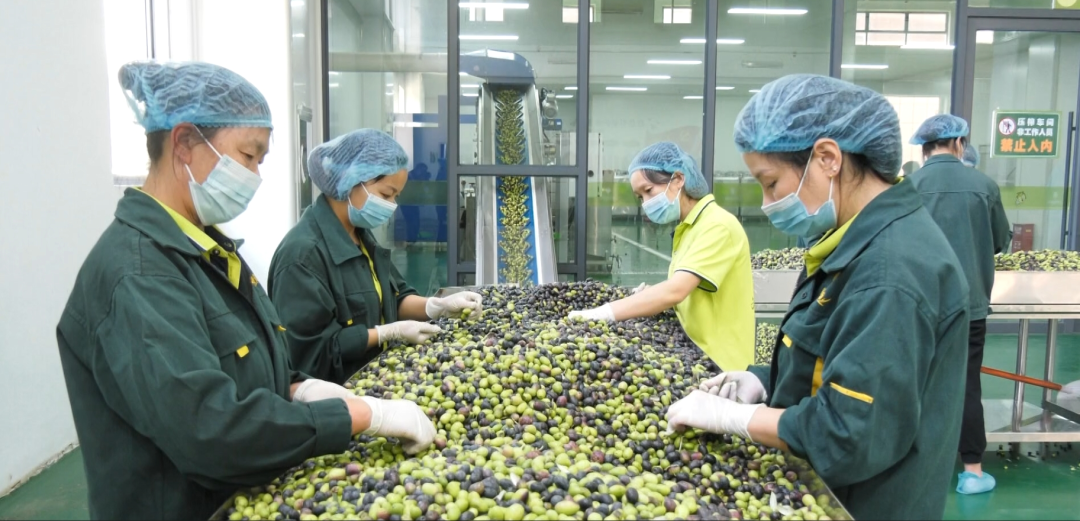 日前,在湖北鑫榄源精深加工车间生产流水线上,新鲜橄榄果在经过物理冷榨等系列程序后,金黄的液体从榨油机里汩汩流出,散发着淡淡的清香。