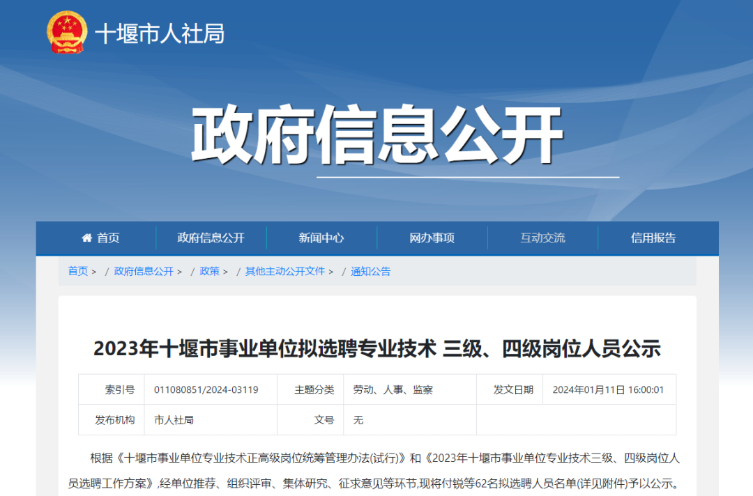 来信地址:十堰市人力资源和社会保障局事业单位人事管理科