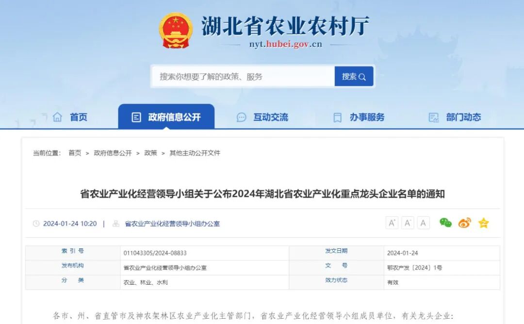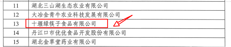 近日,湖北省农业农村厅公布了《省农业产业化经营领导小组关于公布2024年湖北省农业产业化重点龙头企业名单的通知》郧阳区的十堰市绿筷子食品有限公司榜上有名