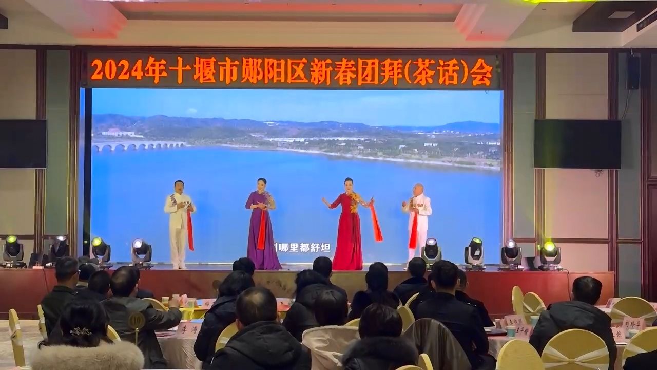 茶话会上,汉江鲟鱼谷总经理季卓然、实验中学副校长潘丽、区公安分局民警王子锴代表各界人士发言,《龙腾虎跃迎新春》《绿水和青山的童话》《爱源新风赞》《新时代的奋斗者》《美丽中国》《团结就是力量》等六个节目依次呈现,展示了全区各界人士拼搏奋斗的精气神,营造了喜庆热烈的氛围。