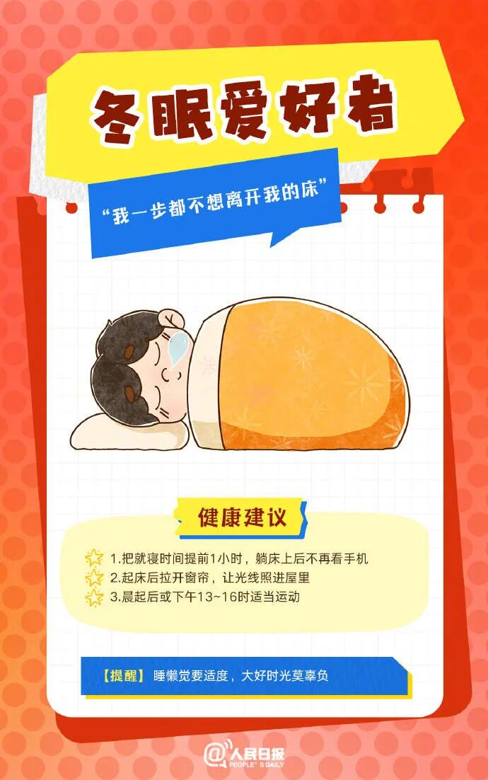 春节人设图鉴,哪一个是你? 2024-02-14 15:31 人民日报 0 春节假期 你是一步都不想离开床的“冬眠爱好者” 还是手机不离手的“冲浪先锋”? 是“月亮不睡我不睡”的“熬夜孤勇者” 还是吃饱了就躺的“家里瘫达人”? 享受喜庆欢乐的同时 也要保证身心健康 收好春节期间健康提示 过个健康幸福年 ↓↓