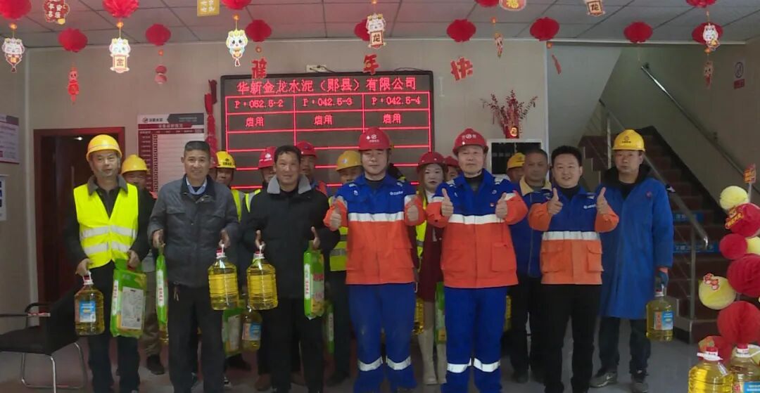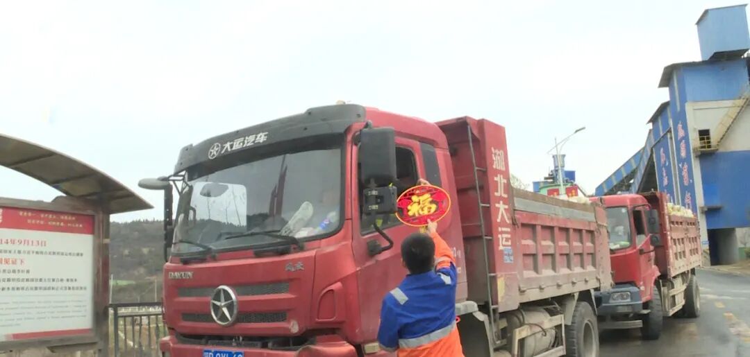 2月15日,记者走进茶店镇华新金龙水泥(郧县)有限公司,新年第一批购买水泥的司机已经排起了长队,公司特地准备了大米、食用油等新年贺礼,并为拉货离厂的司机发放“福”字,祝他们一路平安。