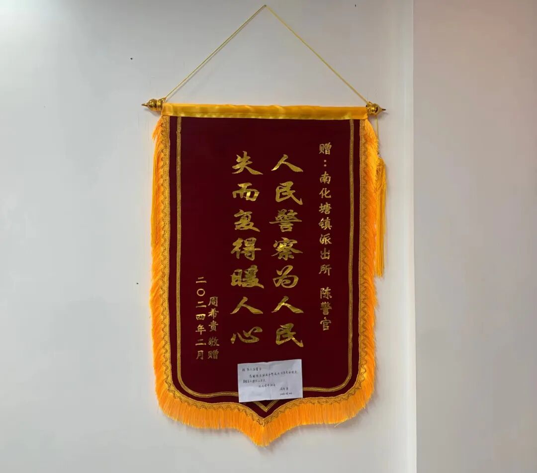 事后,周某将一面书有“人民警察为人民 失而复得暖人心”的锦旗和一封手写感谢信,悄悄地放在派出所接警台,表达感激之情。