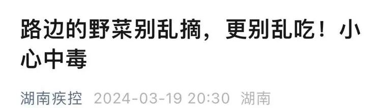 建议一旦发生不适,马上停止食用,立即催吐,携带剩余野菜及呕吐物,及时就医。