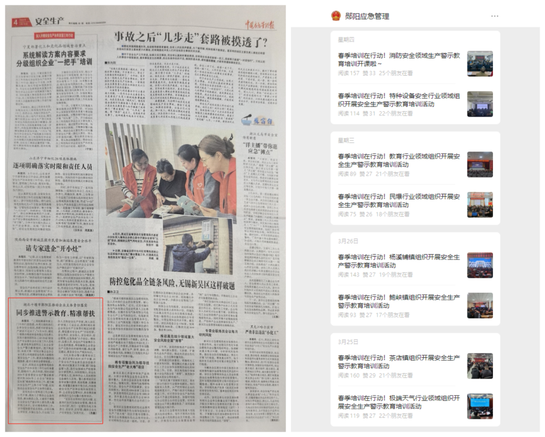 《中国应急管理报》刊登郧阳区安全生产警示教育培训典型经验做法,郧阳区应急管理微信公众号发布各乡镇、各专委会牵头部门警示教育培训新闻稿42篇,全面回顾梳理培训进程和内容,总结经验不足,营造浓厚氛围,为后期提升教育培训工作质效提供借鉴。