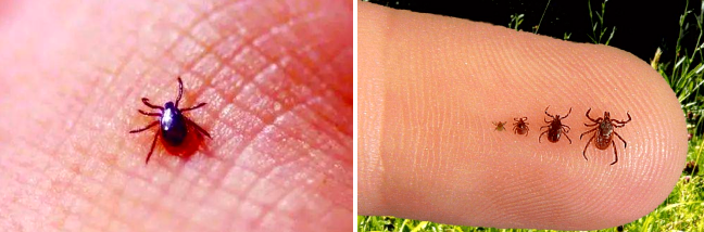三是户外游玩、劳作后及时检查有无叮咬,尽快洗澡更换个人衣物。蜱常附着在人体的头皮、腰部、腋窝、腹股沟及脚踝下方等部位是否有黑痣样的赘生物,一旦发现有蜱已叮咬皮肤,可用风油精涂在蜱身上,使蜱头部放松,再用尖头镊子紧紧夹住蜱头部或靠近头部的地方,然后缓慢用力取出蜱。不要生拉硬拽,以免拽伤皮肤或将蜱的头部留在皮肤内。取出后,再用碘酒或酒精做局部消毒处理。