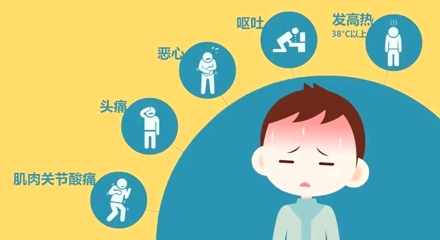 常见症状包括疲乏、恶心、呕吐等,部分可出现头痛、肌肉酸痛、腹泻等。