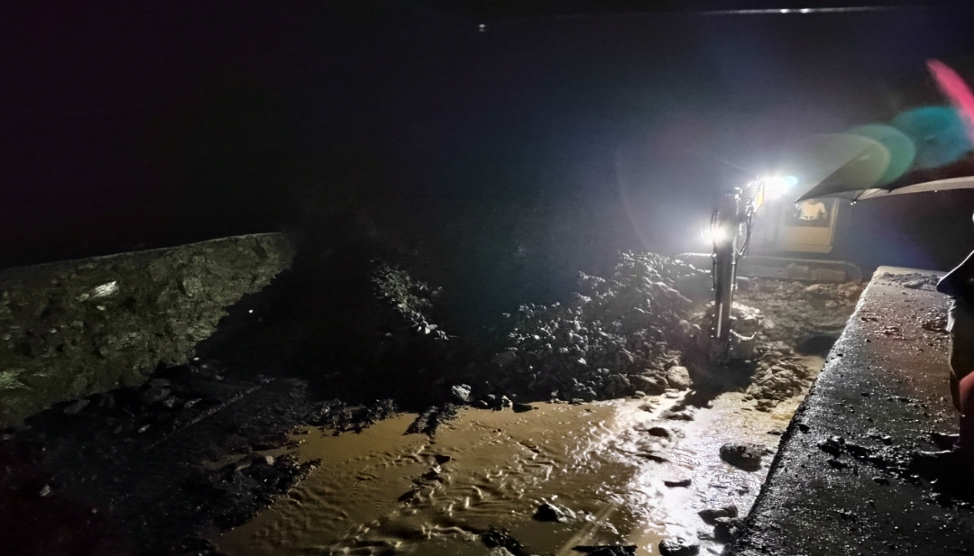 7月10日20时30分,十堰市郧阳区叶大乡杨柳村灾害信息员周建强在巡查时发现岱山沟杨柳段二组河道因山体垮方堵塞,第一时间向叶大乡政府电话报告该情况,叶大乡政府接报后,立即组织乡、村干部赶赴现场查看处置。经现场勘查,该处险情主要因近期持续降雨造成河道上方山体垮塌堵塞河道,土方量达2000立方米,垮塌堵塞位置距离上游朝阳水库直线距离不足500米,距离周边居民区不足50米,且水库满水位运行即将泄洪,该处垮方极易形成堰塞湖危及周围住户及下游集镇安全。险情严峻,该乡迅速组织周边群众转移,同时紧急调派机械、人员对该处河道进行抢险疏通。11日凌晨3时,河道疏通施工完毕,隐患消除、险情化解,成功避免了人员伤亡和财产损失。