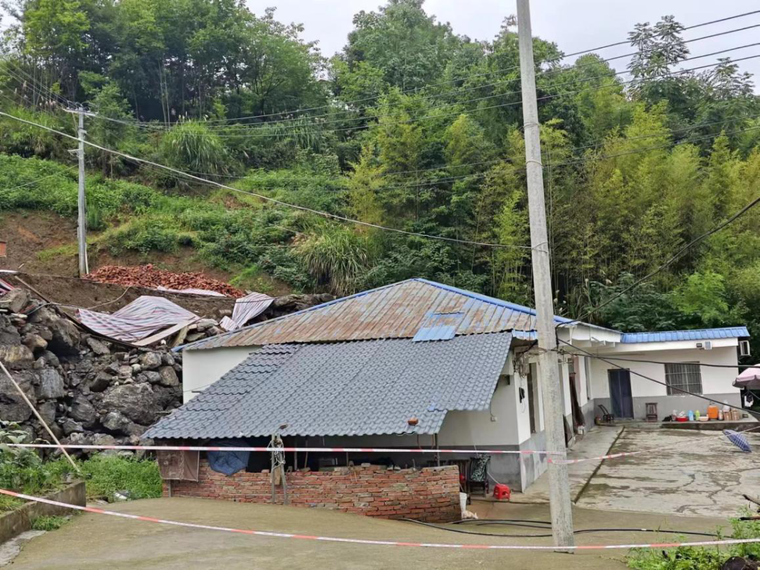 7月8日17时25分,十堰市竹山县竹坪乡金花村灾害信息员彭真冒雨巡查,当排查到庙湾安置点时发现,一村民家房屋左侧后方岩土松动,并出现树木倾斜,进一步排查发现后山地裂缝明显,判断山体存在地灾风险,遂立即上报竹坪乡人民政府,竹坪乡人民政府接报后将此情况上报至县应急、自规等相关职能部门。18时,竹坪乡人民政府将受威胁的1户2人转移,并对现场继续开展隐患排查,明确专人负责,时刻监控山体的具体状况。当天20时35分,该房屋左侧发生滑坡,致使村民家中两辆摩托车及其他生活物品被掩埋,无人员伤亡。