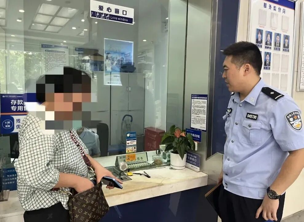 13日下午4时20分,汉江路派出所接反诈中心预警“辖区居民张某向涉诈账户转账5万元,目前正在某小区楼下银行准备继续转账”后,第一时间调度指派就近民警前往核查,民警不到两分钟就赶至银行找到张某。