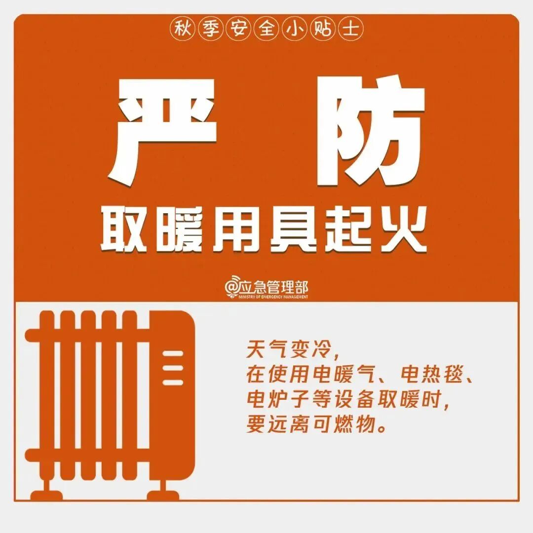 秋季安全 这些问题要注意! 2024-11-06 17:08 中华人民共和国应急管理部 0 气温下降 居民用火、用电、用气增多 应防范哪些安全隐患? ↓↓↓ 秋季天干物燥,大风天气多 企业安全生产 这些要点请注意! ↓↓↓