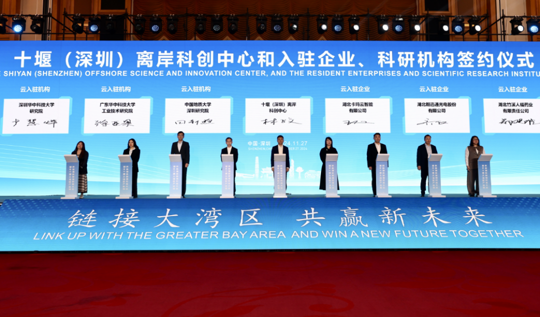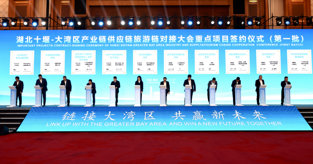 新兴产业对接活动,邀请智能装备、低空经济、生物医药、人工智能、新材料领域的资深专家作主题演讲。东风设备制造有限公司、东石特发(湖北)精密制造有限公司、城市之光(深圳)无人驾驶有限公司、十堰市太和医院相关负责人分别介绍了各自研发成果、产品及项目发展等情况。举行了十堰—大湾区新兴产业合作签约、深圳市航空业协会与十堰市低空经济产业协会友好合作关系签约仪式。