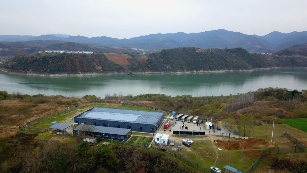 12月5日拍摄的坐落于湖北十堰郧阳区(原为郧县)青曲镇弥陀寺村山脊上的学堂梁子遗址(无人机照片)。新华社发(曹忠宏 摄)