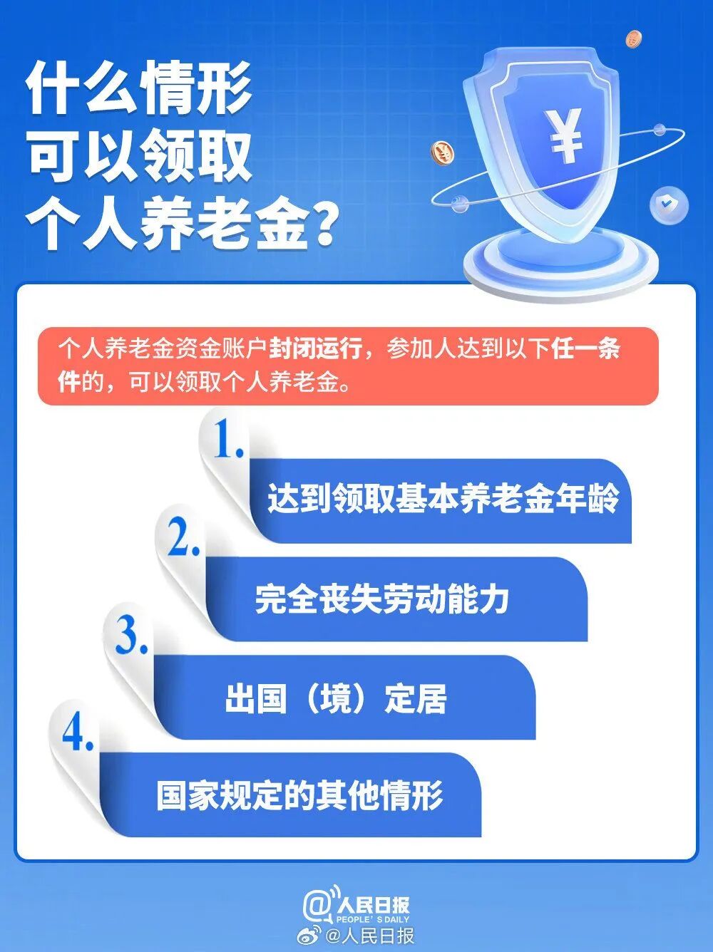 今起全国推广!钱直接打到个人社保卡银行账户 2024-12-15 18:37 长江云新媒体 0 今天(12月15日)起,个人养老金制度推广至全国。个人养老金是指政府政策支持、个人自愿参加、市场化运营、实现养老保险补充功能的制度,是我国养老保险体系的“第三支柱”。 什么是个人养老金制度?哪些人可以开通个人养老金账户?如何领取个人养老金?通过下面九张图跟小编一起了解个人养老金制度最新政策