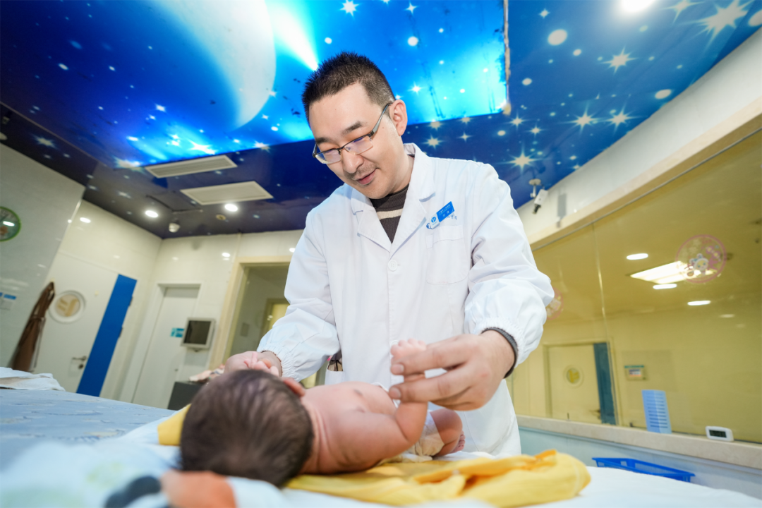 因为身高,人医产科主治医师刘博总被同事戏称为“产房铁塔”。很难想象一个186cm的大汉,却是照顾新生儿的一把好手,只要抱起新生儿,他便瞬间切换“温柔奶爸”模式。抱婴儿时轻拍哄睡,做胎心监护时哼童谣,甚至能单手给哭闹的宝宝换尿布。“刘医生这手法,比我们女护士还细致!”助产士们常这样称赞他。