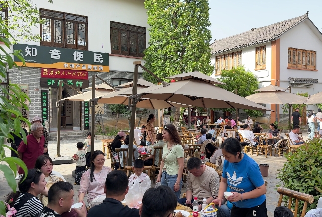 互动体验增添趣味,科技赋能凸显亮点。各景区以互动性与科技感提升游客参与度。龙韵村·武当不夜城融合MR技术打造沉浸式剧场《黑暗传》,游客可穿汉服参与剧情互动,同时“元炁武当”项目以数字科技呈现千年武当文化,实现传统与现代的碰撞;虎啸滩景区推出玉米DIY爆米花体验及古风汉服舞蹈快闪活动,并邀请《西游记》“取经天团”角色惊喜空降,与游客零距离互动,营造穿越古今的趣味场景,增强亲子互动与场景趣味性;樱桃沟村的樱桃采摘及宇翔家庭农场的桑葚采摘,让游客亲身体验田园收获之乐,在劳动中感受自然馈赠。