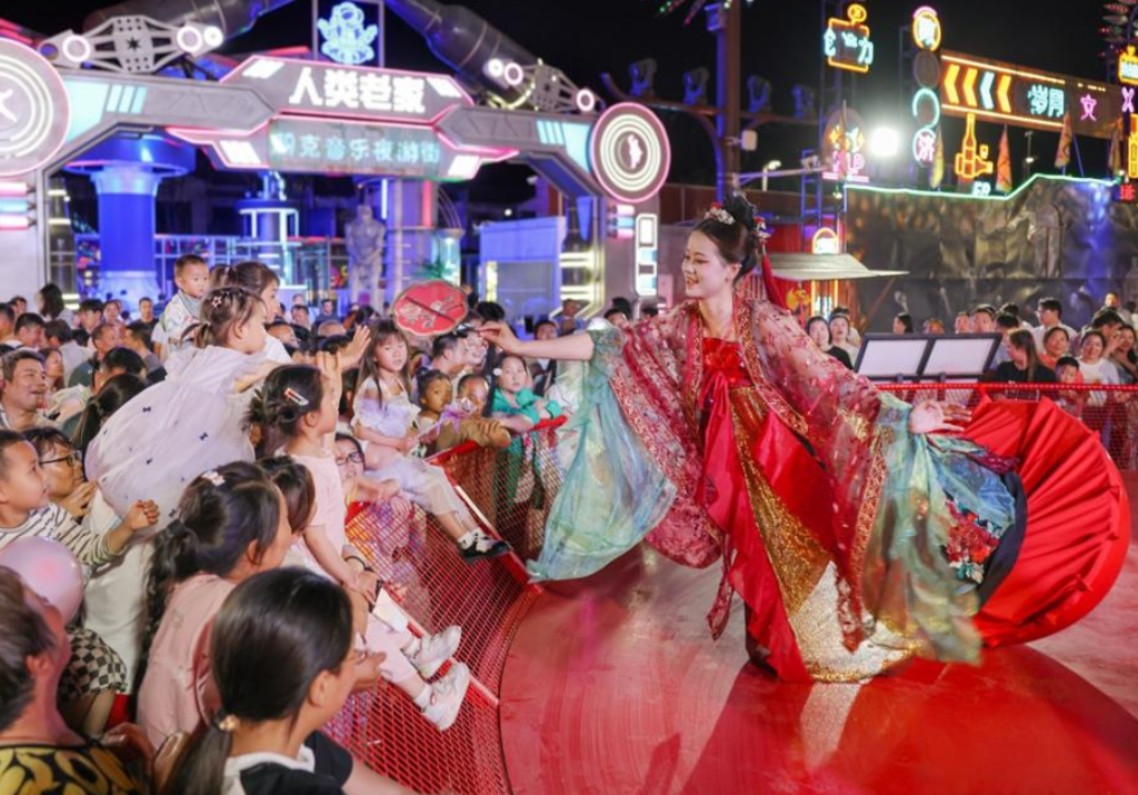 文化演艺、非遗表演、惊喜抽奖、美食娱乐……“五一”假期期间,郧阳区柳陂镇龙韵村的武当不夜城成为热门打卡点,每日人流如织,热闹非凡,为市民和游客们带来了一场欢乐盛宴。 图/记者 张建波