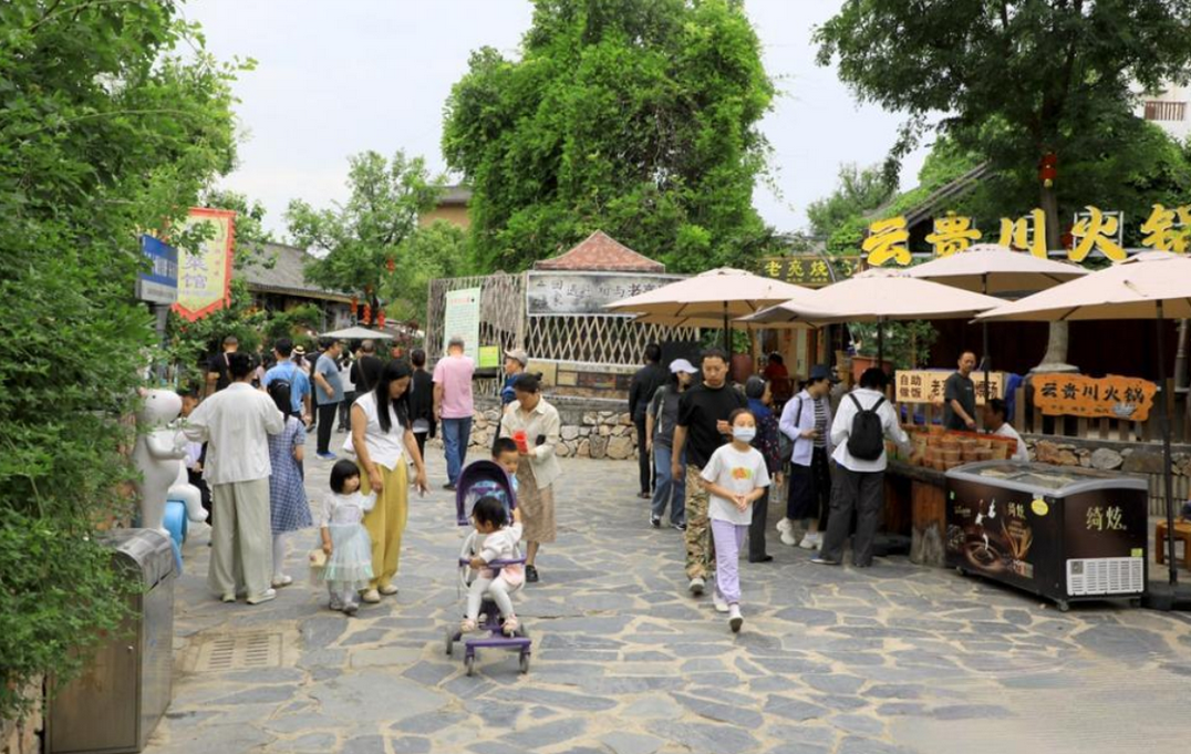 5月4日,五一假期的尾声,郧阳区柳陂镇龙韵村依然游人如织。来自四面八方的游客们或悠闲漫步,或驻足拍照,或看节目表演、品农家菜肴、赏村庄新韵,处处洋溢着欢声笑语。图/记者 潘世新