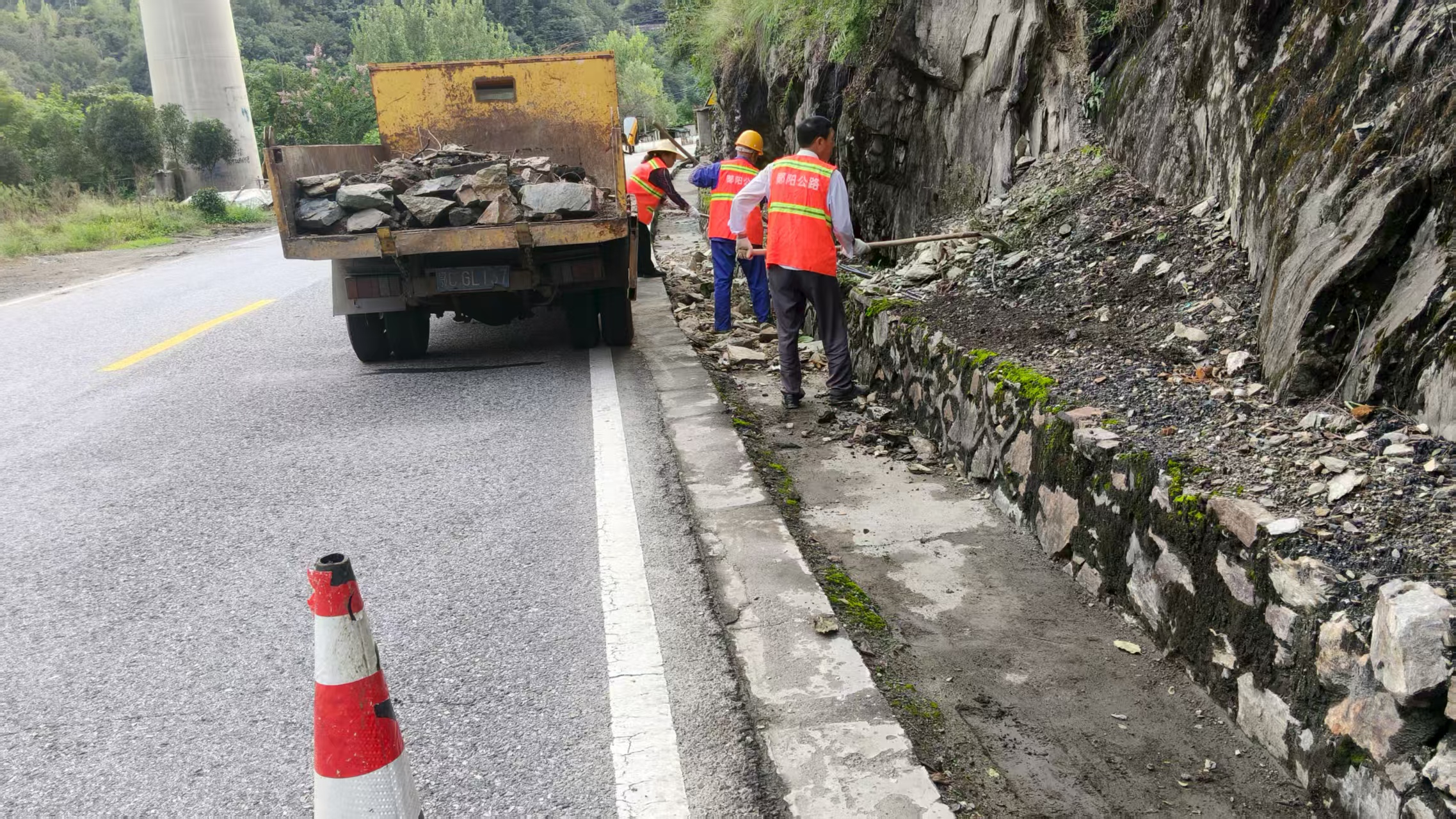 精心整治提高公路颜值。坚持将路域环境整治作为长期性、动态化工作,持续发力,不断提升群众假期出行的满意度。集中力量对辖养路段进行“拉网式”“精细化”治理,以“机械+人工”方式全面开展雨后整治工作,加大对路面保洁力度,清理道路沿线塌方、落石,修剪遮挡视线树木,对沿线钢护栏进行维修、更换,对缺失警示桩、标志标牌等安全设施进行维护更新,让公路沿线“颜值”与“气质”双提升,切实服务群众高品质出行。截至目前,累计清理路面落石35处,清理塌方2300余立方米,清理遮挡标志牌32处,修补钢护栏1150米,增设标志牌24块。