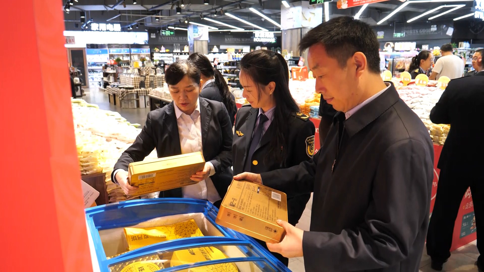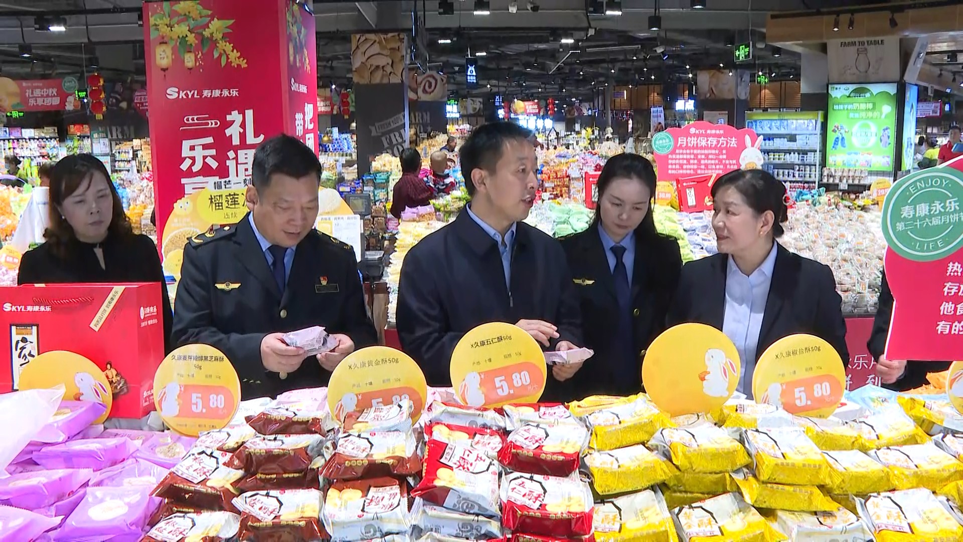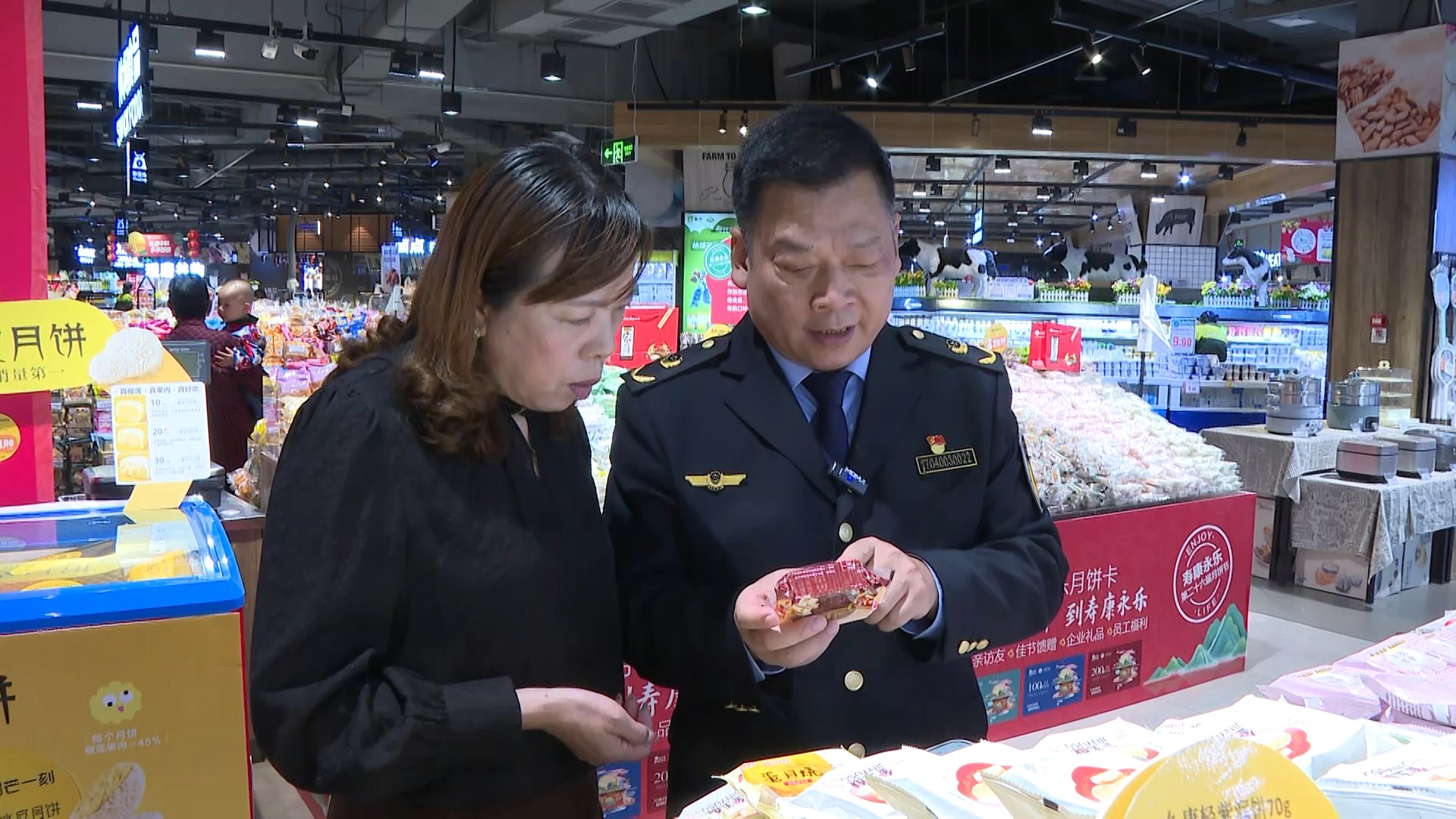 执法人员来到寿康永乐郧阳新天地购物中心,重点检查月饼经营单位的索证索票、进货台账及库存记录,并随机抽查了月饼标签标识、生产日期、保质期等内容。