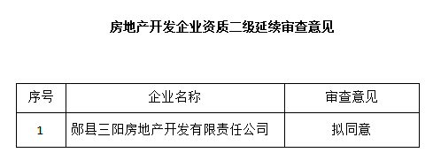 根据《中华人民共和国行政许可法》《房地产开发企业资质管理规定》和《湖北省房地产开发企业资质管理实施细则》等政策法规的相关规定,我单位对本次相关企业的房地产开发企业资质二级申报材料进行了审查。现将审查意见予以公示(详见附件),并就有关事项通知如下: